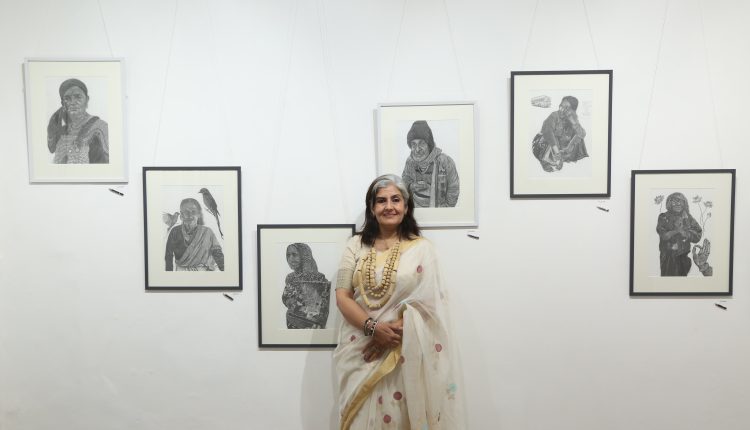 Shikha’s works did not rely on spectacle. Instead, they rested on the human face etched with precision, layered with feeling. Farmers, rural workers, women, and children emerged from textured charcoal shadows and delicate pencil strokes, their expressions carrying dignity, resilience, and quiet strength.